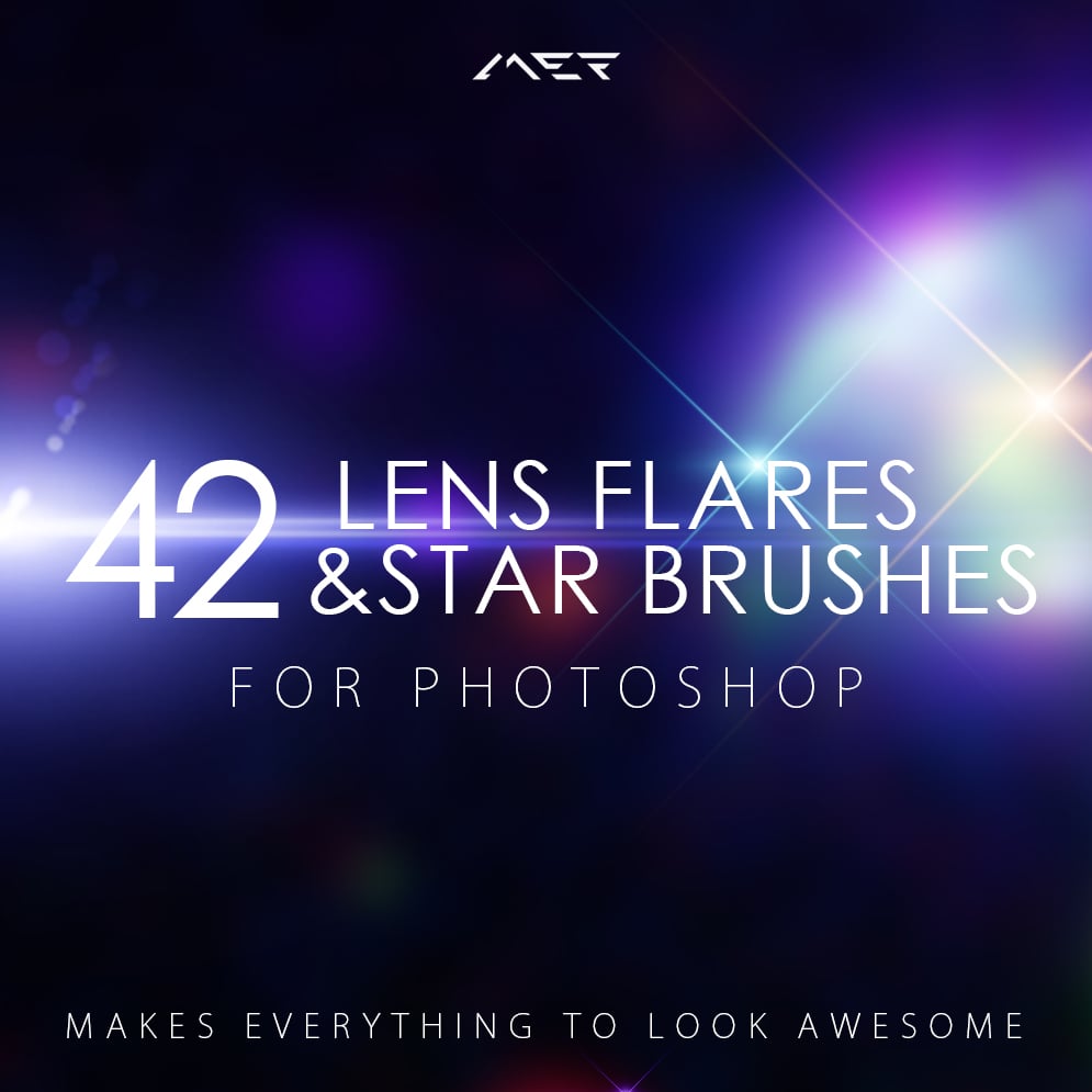 Pack contains 42 hight quality lens optical flares and stars brushes, 1000 – 2500 px sizes, 300 dpi. Just 2-3 clicks for great result! Make your project, concept art, illustration, photo, flyer, etc. awesome in seconds.